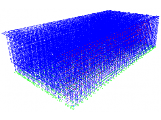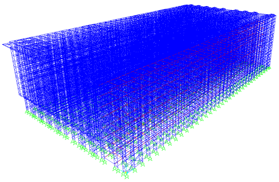 进行有限元分析的货架结构形式、构件尺寸、荷载条件等由业主提供,目的是通过有限元抗震分析,对其提供的钢货架抗震性能进行评估,并且提出在抗震上相应的预防和改进措施。