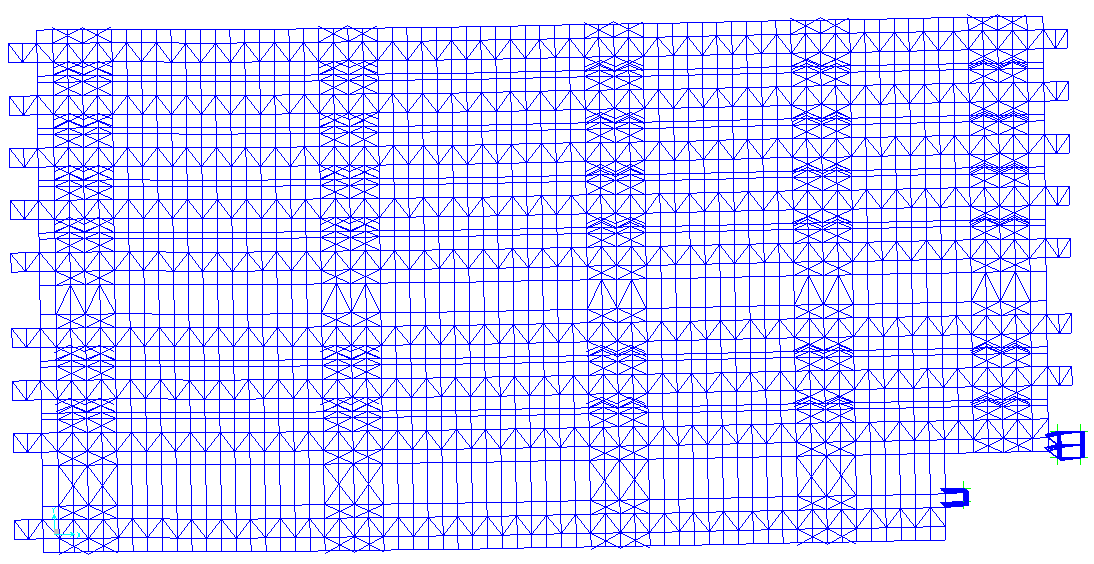 优化方案计的前50阶周期和模态表明,振型的频率相差较小,频谱比较密集,周期没有大的跳跃,振型之间存在耦合效应。模型从原方案的主要X向振动转变为整体振动,第一周期从17s降为2s,大大提高了结构的整体抗震能力。